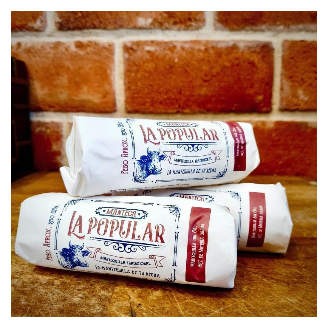 Mantequilla La Popular es la mantequilla de tu recha. Fabricación artesanal, natural y tradicional hecha como "la de casa", sin aditivos ni conservantes. Sabor a pura mantequilla de vaca.